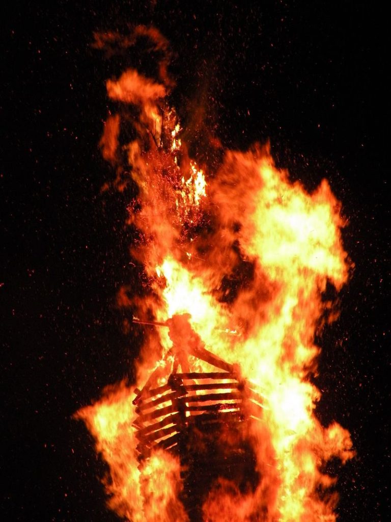 Beim Oktogon Am Himmel wird ein Funkenfeuer für Kinder in Feuerschalen entzündet.