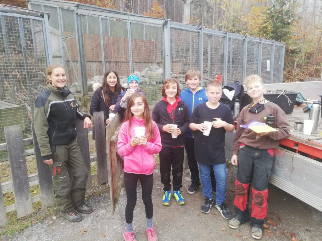 Schülerinnen und Schüler der NMS Rankweil mit Franziska (links) beim Steinhuhngehege © Wildpark Feldkirch