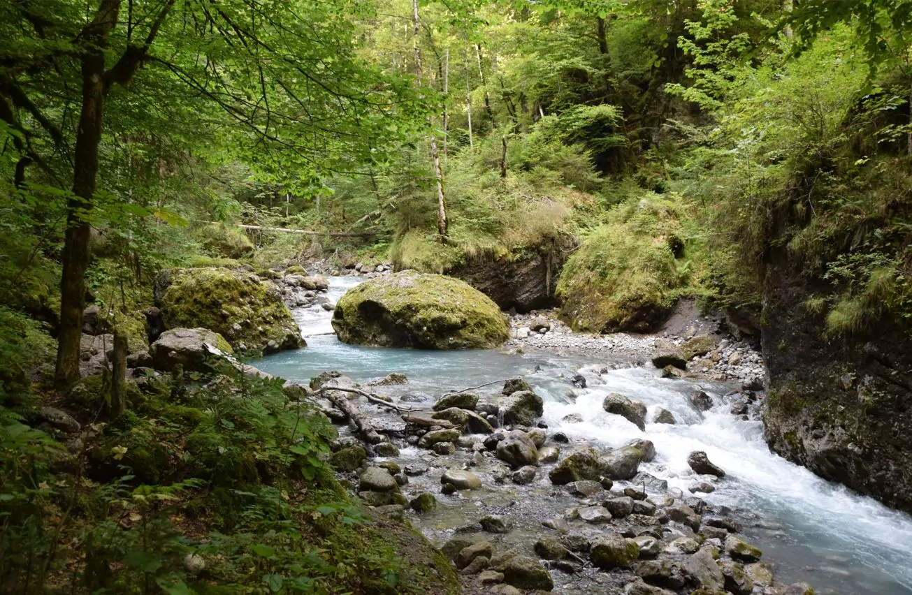 Gleich nach dem Betreten der Schlucht überkommt den Besucher eine Ruhe der besonderen Art: Man kann den Alvierbach in der Ferne rauschen hören, ist umgeben von bemoosten Bäumen und kann vielleicht sogar den Geruch von Gegrilltem wahrnehmen. Dies gehört nämlich zu den vielen Aktivitäten, die man gleich am Eingang der Schlucht ausführen kann. Nach nur wenigen Schritten kann am Bachbett die Sonne genossen, mit dem Wasser gespielt und gegrillt oder gepicknickt werden.