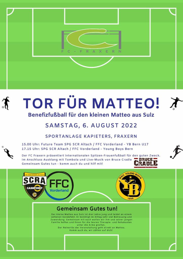 Am 6. August spielen Altach und Young Boys Bern in einem Benefizmatch für den kleinen Matteo aus Sulz. Matteo leidet an einer sehr seltenen Autoimmunerkrankung. Matteo hat eine Erkrankung die weltweit nur bei ihm diagnostiziert wurde. Deswegen ist der Behandlungsaufwand sehr groß.