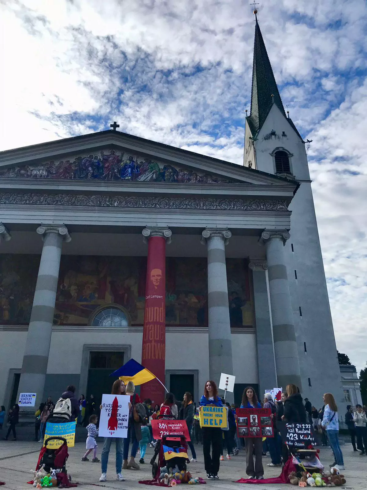 Heute fand eine Demonstration von hunderten Ukrainern gegen Putin und seinen Krieg statt. Dabei betonten die Ukrainer auch wieviele Kinder schon Opfer von Putin wurden. 423 Kinder wurden seit Kriegsbeginn von russischen Truppen ermordet.