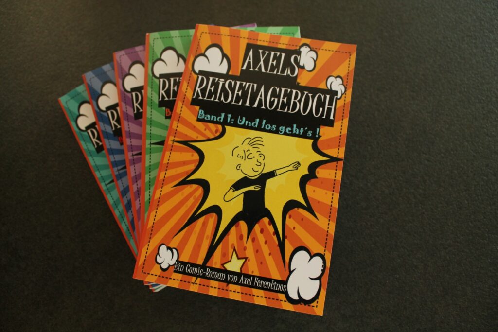 Axel Ferentinos: Eigentlich wollten wir nur eine kurze Reisegeschichte schreiben und illustrieren. Dann konnten und wollten wir nicht mehr aufhören, weil es so viel Spaß gemacht hat. Insgesamt hat es dann doch circa 2 Jahre gedauert, die 5 Bände zu schreiben und zu illustrieren. Da sind uns dann immer wieder so lästige Sachen wie Schule und Arbeit dazwischen gekommen!