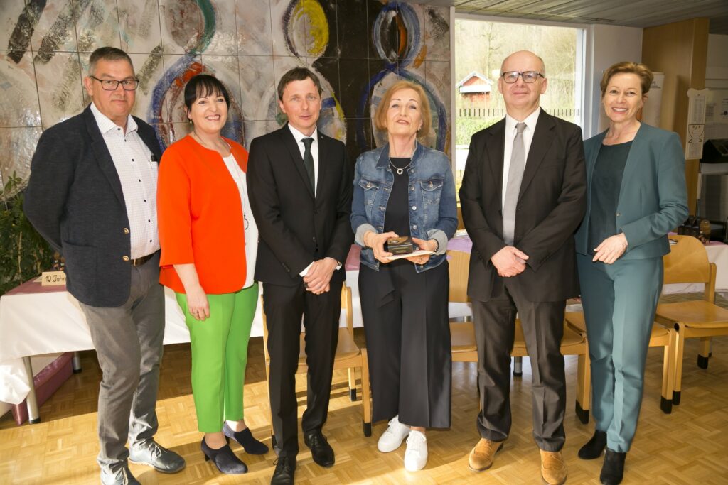 „Durch ihren Einsatz, ihre Kompetenz und Erfahrung haben die Jubilar:innen nicht nur das LKH Rankweil geprägt, sondern auch viele Kollegen inspiriert“, sagte Verwaltungsdirektor Mag. Michael Saxenhammer, MBA, bei seiner Begrüßungsrede. Gemeinsam mit Pflegedirektorin DGKP Elke Kovatsch, MSc MBA, und Chefarzt Dr. Primar Jan di Pauli blickt er zuversichtlich in die Zukunft: „Mit diesem engagierten und loyalen Team werden wir auch künftige Hürden meistern.“ Neben den 39 Jubilar:innen, die seit zehn, 15 und 20 Jahren am LKH Rankweil beschäftigt sind, feiern elf ihr 25- oder 30jähriges Dienstjubiläum, sieben sind seit 35 Jahren Teil des Teams und zwei bereits seit 40 Jahren. „Ich bin dankbar für die große Erfahrung, die hier im Raum versammelt ist, auf die wir uns stützen und auf die wir vertrauen können“, sagte Landesrätin Martina Rüscher.