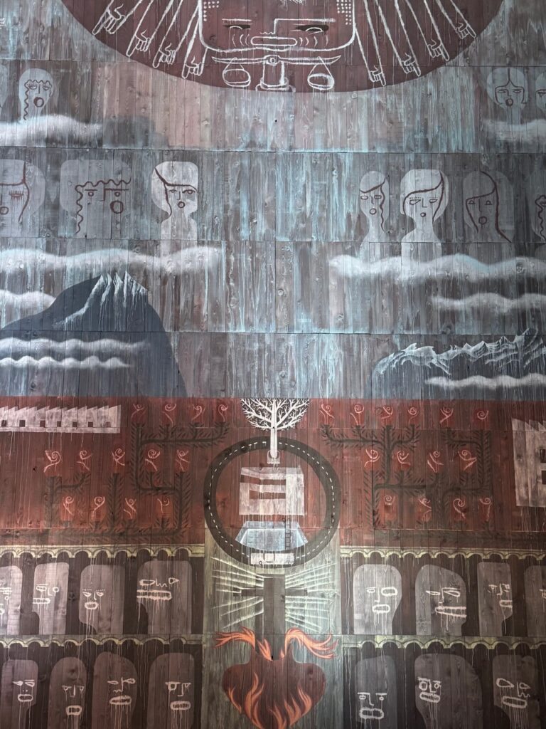 Das Bild aber ist mehrdeutig. Die „Waagschale, der maßgeregelte Baum, die Drehscheibe des Lebens, das heiße Herz Jesu“, beschrieben von Uwe Jäntsch, entziehen sich der Entzauberung durch Klarheit. Was wird er als nächstes malen? Hätte ich einen Wunsch frei, wäre es die Bergpredigt.