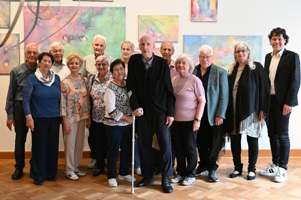 Um nicht nur in Erinnerungen zu schwelgen, sondern den Blick auch nach vorne zu richten, erhielten die Paare anschließend einen Einblick in die Ausstellung „Wo wir uns begegnen“ im Palais Liechtenstein, die die Werke von Feldkircher Künstler aus den letzten 100 Jahren zeigt.