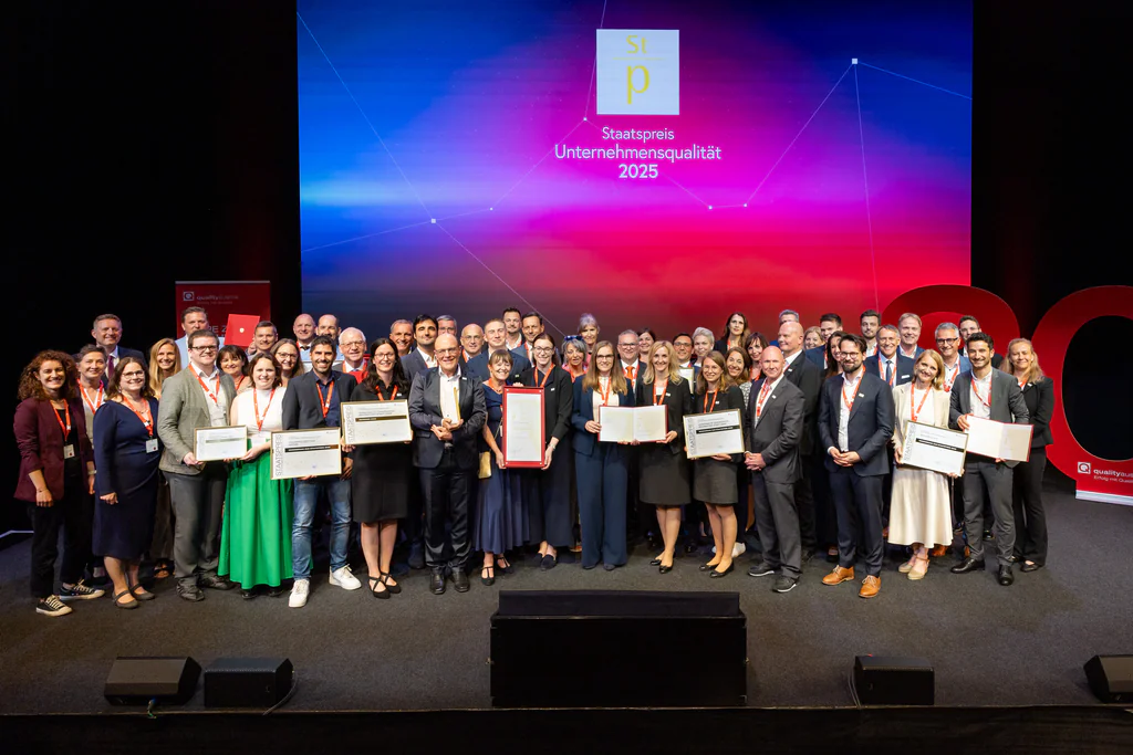 Auch im Jahr 2025 hat sich die Volkshochschule Götzis wieder für den Staatspreis Unternehmensqualität beworben und letztens konnten Obmann Mag. Wolfgang Türtscher und der stellvertretende Geschäftsführer Mag. Bastian Kresser in Wien im Rahmen eines Festaktes die Auszeichnung als eine der fünf erfolgreichsten EFQM Unternehmen Österreichs entgegennehmen.