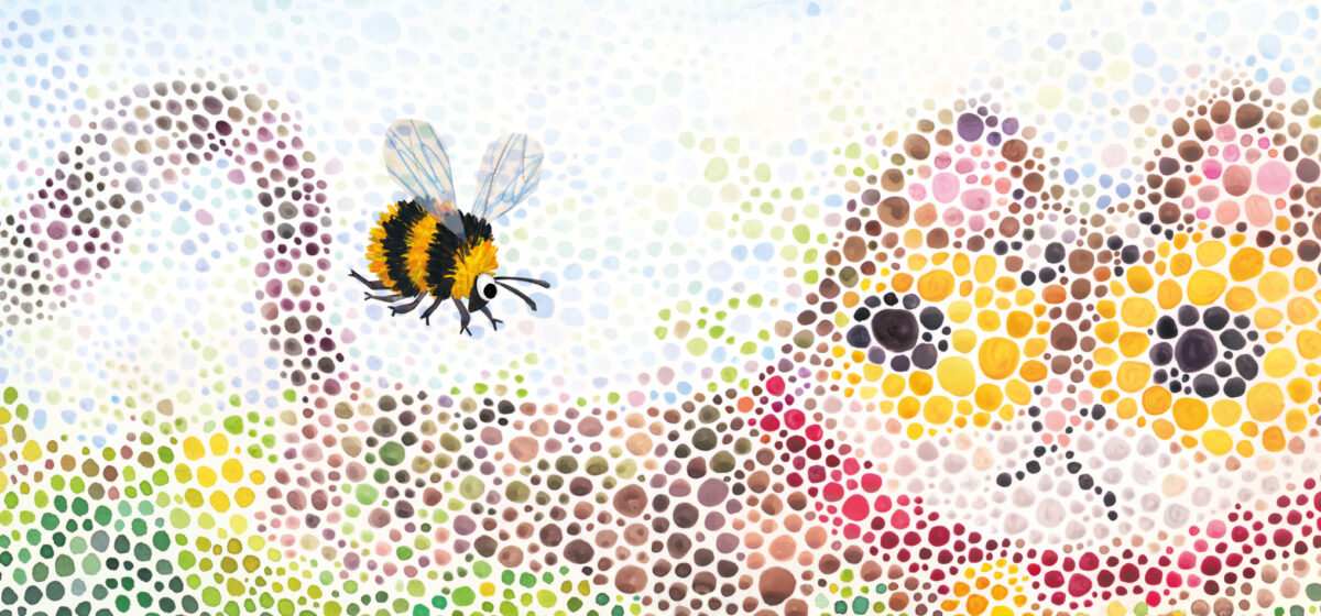 Die Illustrationen sind das Herzstück: Mal als detailgenaue Bleistiftzeichnung oder Collage im Stil des sogenannten Pointilismus mal in Aquarell oder mit Malkreide – jede Tierperspektive erhält ihre eigene gestalterische Eigenhat und wird somit zum Unikat. Besonders eindrücklich ist Wenzels Umsetzung biologisch fundierter Sehweisen, etwa die mosaikartigen Facettenaugen der Biene oder die verwaschene Sicht durch Wasser beim Fisch – genau diese unterschiedlichen Stilrichtungen faszinieren Kinder und vermögen Neugierde zu wecken.