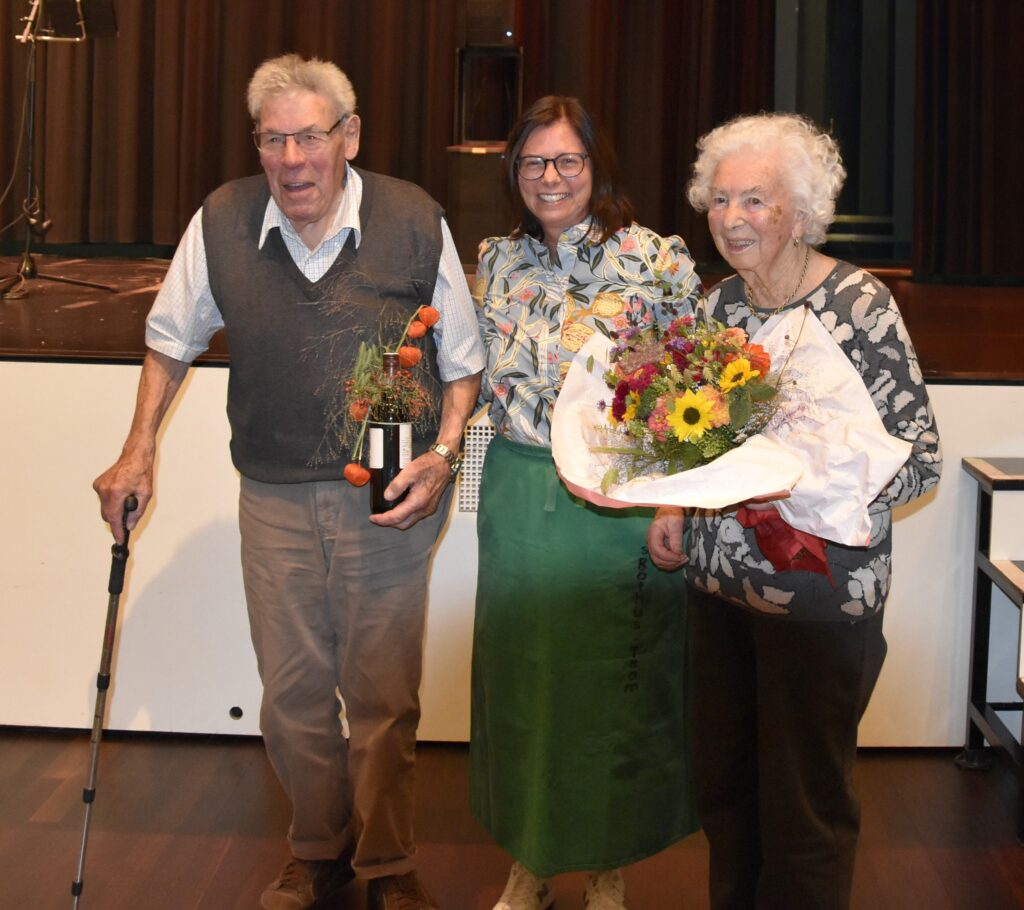 Besondere Gäste des Abends: Rudolf Adassnigg (99 Jahre) und Marianne Stadelmann (90) mit Bürgermeisterin Katharina Wöß-Krall. Fotos: Gemeinde