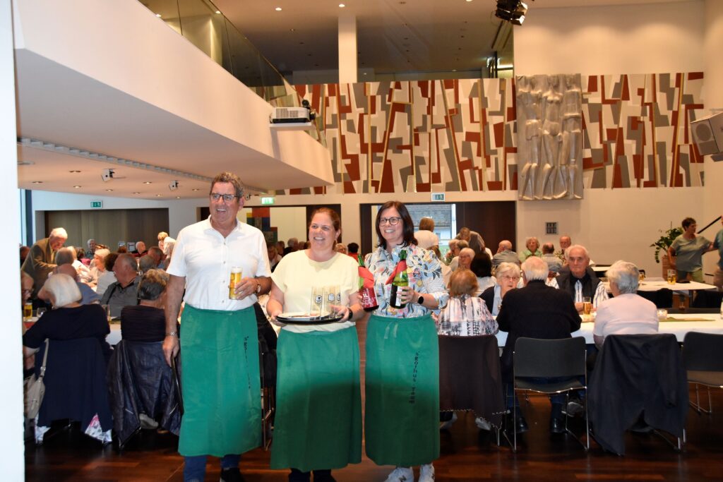 Den Abschluss des gelungenen Ausflugs bildete ein gemütliches Beisammensein im Vinomnasaal. Dabei ließen es sich die Bürgermeisterin Katharina Wöß-Krall, Gemeindeärztin Magdalena Wöß sowie die Gemeinderäte Andreas Prenn und Helmut Jenny nicht nehmen, die Kellnerschürzen umzubinden.
