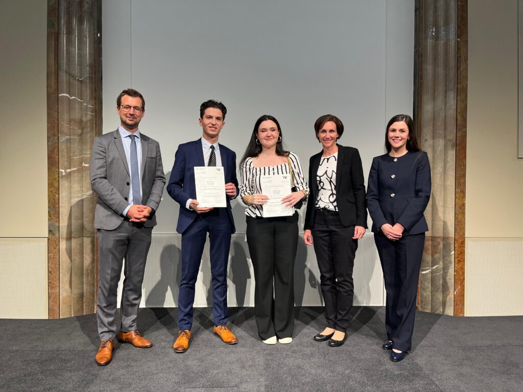 Samuel Benvenuti, Ben Ludescher, Jakob Mutinelli und Smiljana Peric wurden mit Ihrer Diplomarbeit „Zukunftssicher vor Naturkatastrophen – Innovative Versicherungslösungen für Privatpersonen in Österreich“ am Freitag, 12. September 2025 in der Österreichischen Nationalbank in Wien mit dem WU OeNB Research Talent Award ausgezeichnet.
