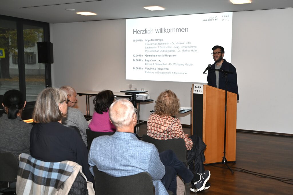 Unter Moderation von Sandra Mierer wurde den Teilnehmenden ein ebenso unterhaltsames wie informatives Programm geboten. Zum Einstieg hieß Vize-Bürgermeister Johannes Herburger die Jungpensionisten willkommen und hob die Bedeutung dieser Lebensphase hervor: „Der Eintritt in die Pension ist der Eintritt in eine neue Lebensphase. Eine Lebensphase, die viele Möglichkeiten bietet Neues auszuprobieren – auch wenn die Veränderung manchmal schwerfällt. Ich wünsche allen viel Spaß und Erfolg dabei!“