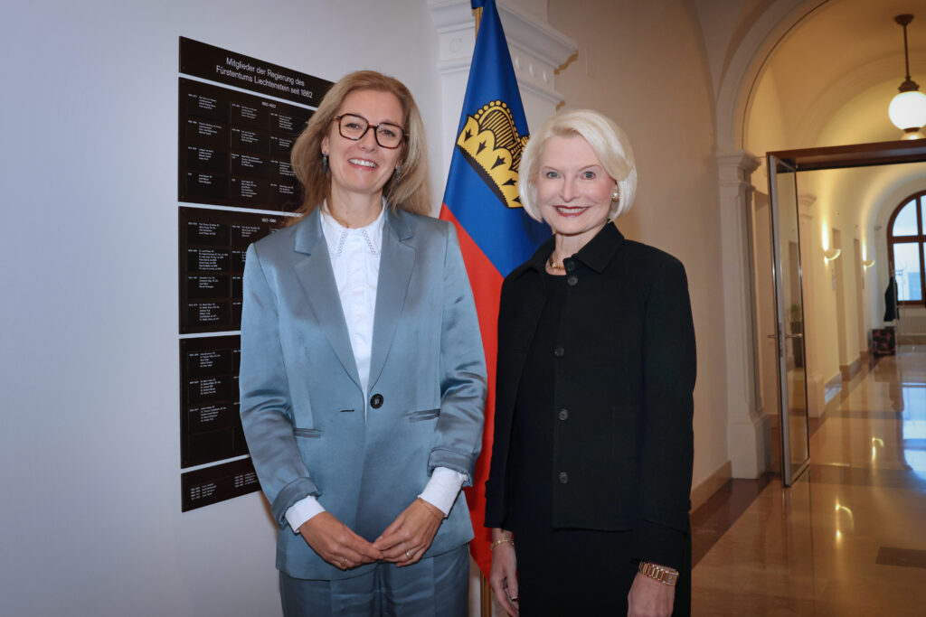 I. E. die Botschafterin der Vereinigten Staaten von Amerika, Frau Callista Louise Gingrich und Regierungschefin-Stellvertreterin Sabine Monauni. Quelle: IKR/Roland Korner