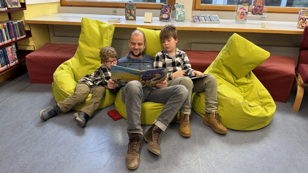 Schon beim Eintreten lag der Duft von frischem Zopf und Kaffee in der Luft. Tische voller weihnachtlicher Neuerscheinungen luden zum Schmökern ein, und überall bot sich ein Bild fröhlicher Geselligkeit: Kinder, die eifrig bastelten, Väter auf den Beanbags, die Märchen vorlasen, und Mütter, die mit viel Geduld Sterne, Tannenzapfen und kleine Kunstwerke entstehen ließen. Der warme Kinderpunsch versüßte den kleinen Gästen den Nachmittag, während die Erwachsenen bei Kaffee und Zopf ins Gespräch kamen und die beschauliche Atmosphäre genossen.