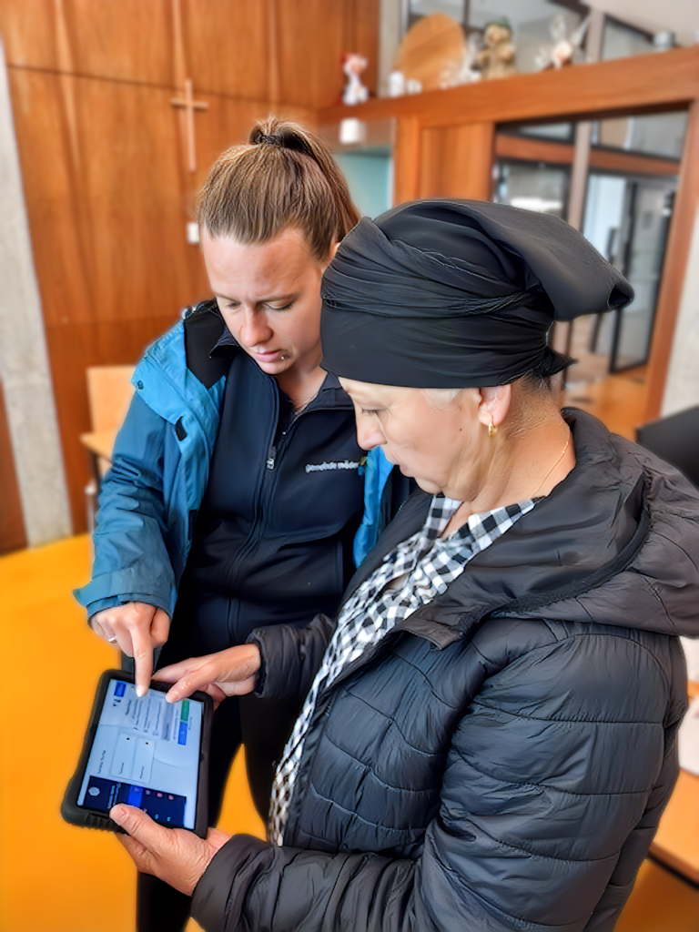 Für das Reinigungspersonal bedeutet die Digitalisierung eine klare und strukturierte Zuweisung der Aufgaben. V. l. n. r.: Carina Böckle, Assistenz Gebäudemanagement Gemeinde Mäder und Nurten Karakas, Reinigungskraft Gemeinde Mäder. Bild: Clean Consulting Austria
