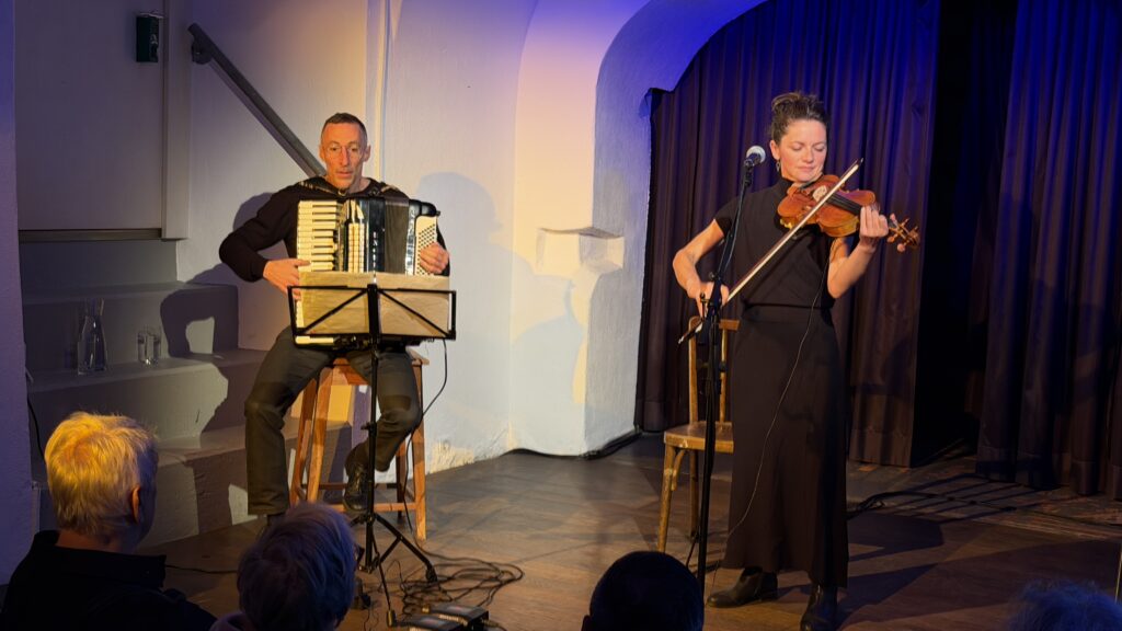 Musikalisch umrahmt wurde der Abend vom Kathman Duo – Folk von Nord bis Ost: Katharina Schwärzler an Geige und Gesang sowie Stefan Mangers am Akkordeon sorgten für eine dichte, stimmige Atmosphäre, die dem ernsten Thema Raum zum Nachklingen gab.