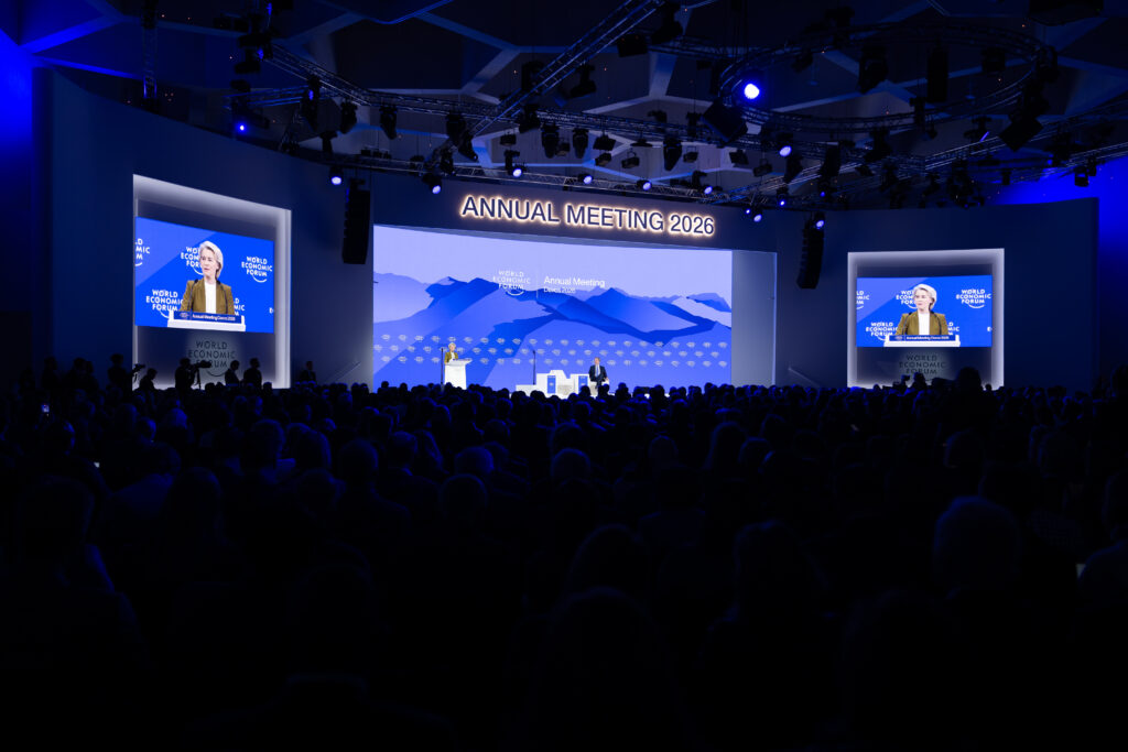 Ursula von der Leyen spricht im Rahmen der WEF-Eröffnung 2026. (Quelle: IKR/Yannick Zurflüh)