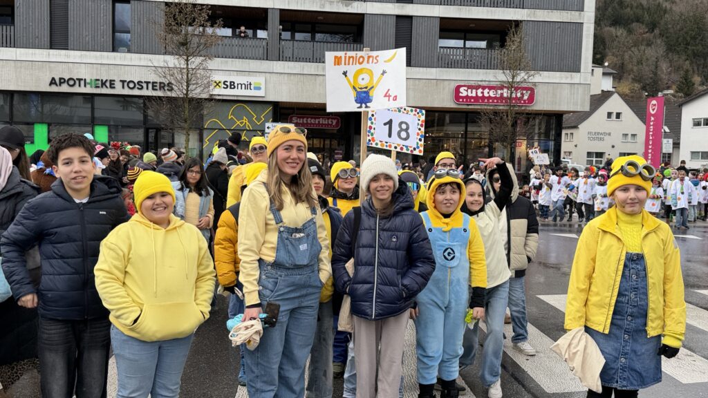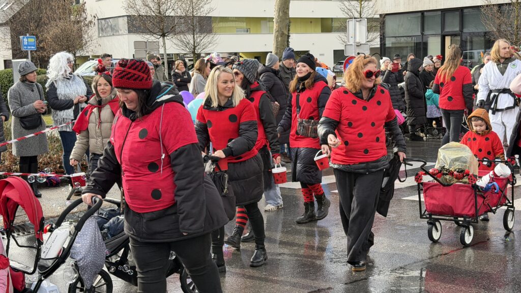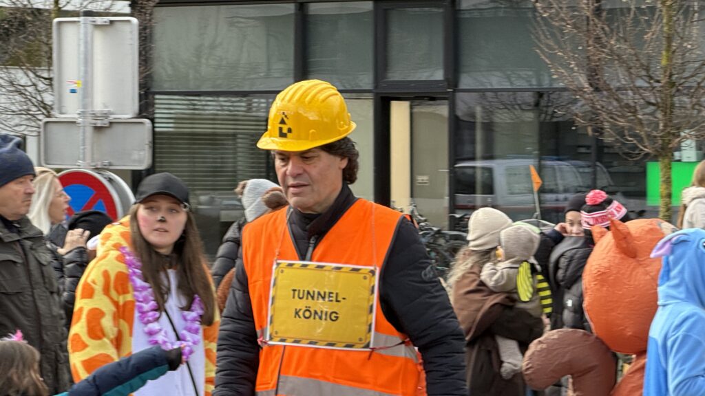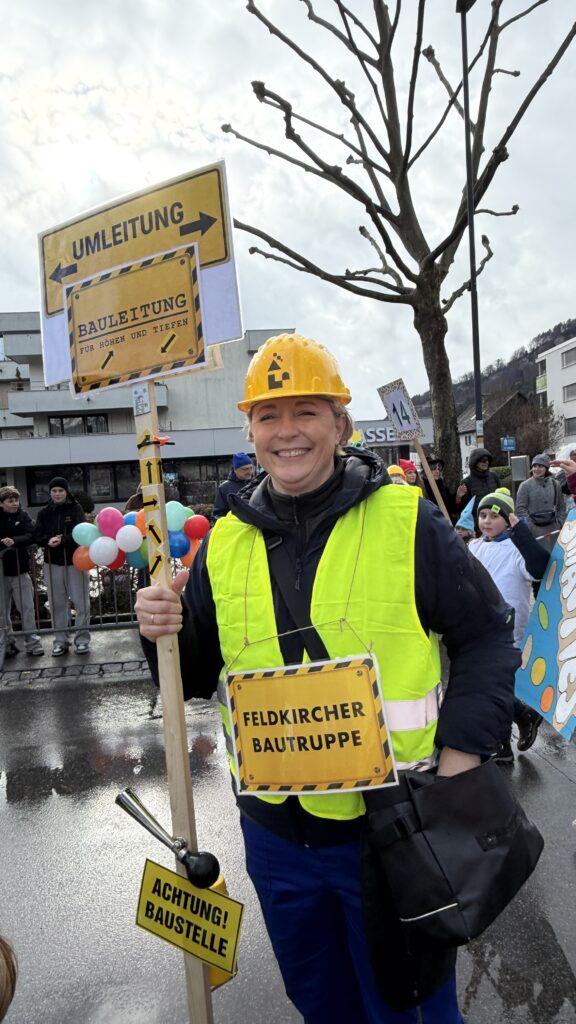 Auch lokale Themen fanden ihren Platz im Umzugsgeschehen. Vertreter der Feldkircher Kommunalpolitik griffen das Dauerthema Tunnelbau augenzwinkernd auf und traten unter dem Motto „Baustelle Tunnel“ auf – ein Motiv, das angesichts der aktuellen Diskussionen und Bauzeit wohl noch länger Bestand haben dürfte.