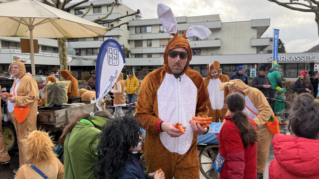 Für besondere Aufmerksamkeit sorgte der Auftritt des FC Tosters 99, dessen Mitglieder als Hasen verkleidet unterwegs waren. Anstelle klassischer Faschingsbonbons setzten sie bewusst ein Zeichen und verteilten „gesunde Karotten“, was vom Publikum mit sichtbarer Sympathie aufgenommen wurde. In eine ähnliche Richtung zielte eine Gruppe von als Zahnarztgehilfinnen respektive Engeln und Feen verkleideten Teilnehmerinnen und Teilnehmern, die Zahnbürsten, Zahnpasta und Zahnseide ausgaben und damit einen humorvollen, zugleich präventiven Akzent setzten.