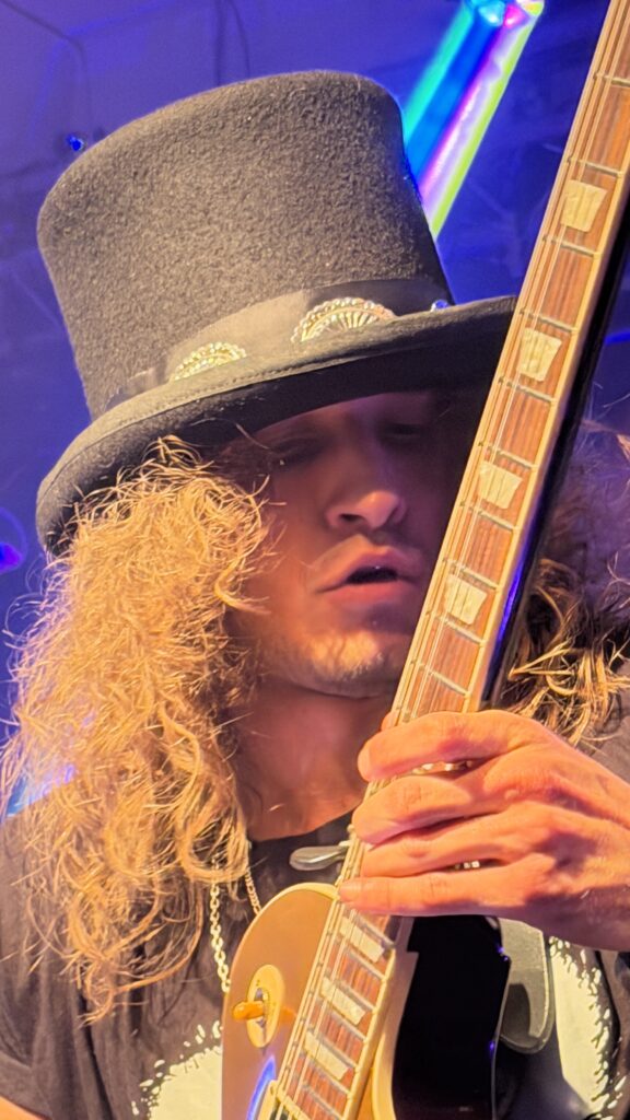 Ebenso eindrucksvoll: Slash alias „Sexy“. Mit Lederjacke, Zylinder, Sonnenbrille und passender Frisur war die Illusion nahezu perfekt. Doch nicht nur das Äußere stimmte – auch spielerisch lieferte er ab: prägnante Riffs, singende Soli und genau jene lässige Coolness, die man mit Slash verbindet.