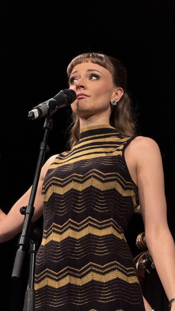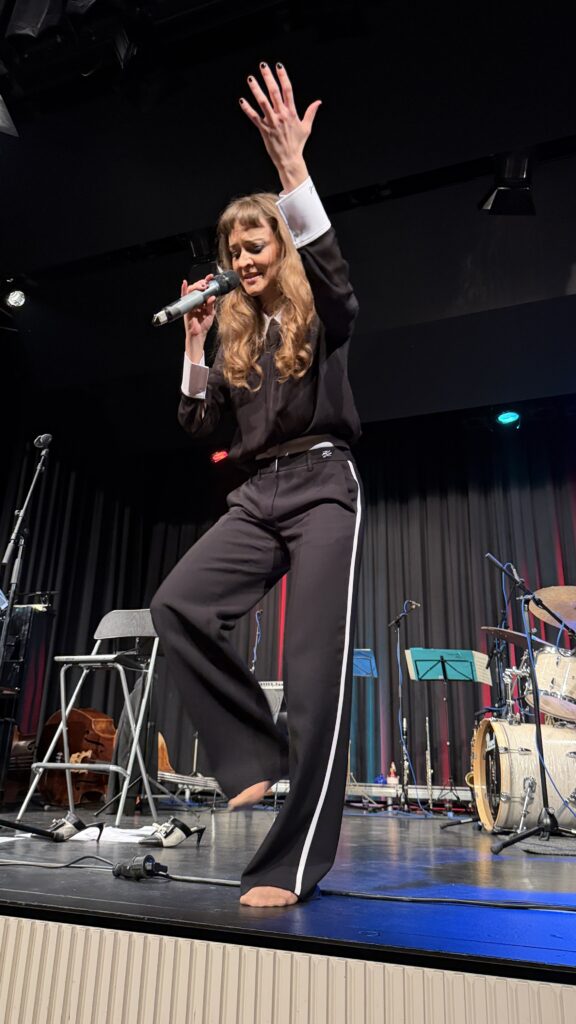 In gewohnter Vorarlberger Manier führte sie durch den Abend und ließ die Band erraten, was Begriffe wie „epramol“ (was die Band mit „Aperol“ assoziierte) oder „khörig“ bedeuten könnten – Rätschkachl war jedenfalls keine Rehkacke. Diese kleinen Anekdoten lockerten das Programm humorvoll auf und zeigten Lauris spielerische Nähe zum Publikum.