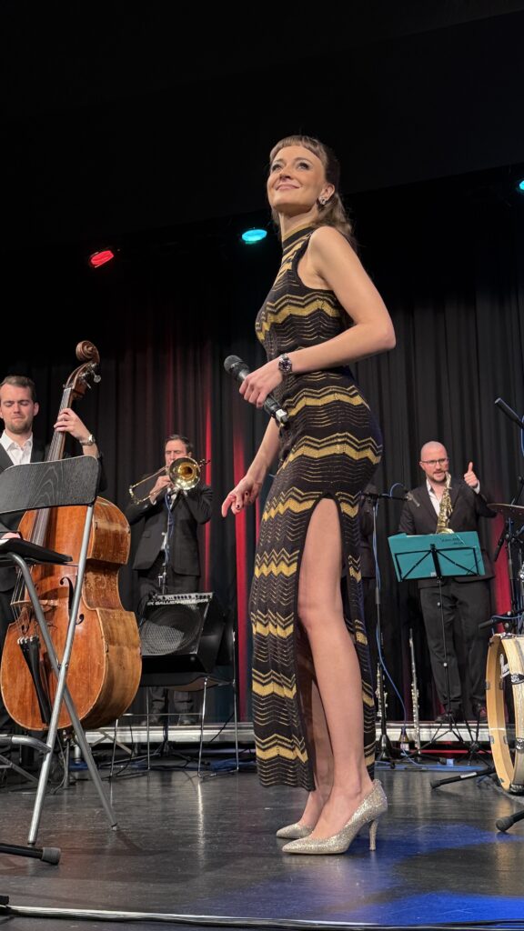 Laure Bilgeri trat mit einer siebenköpfigen Band (die abgespeckte Version der 20-köpfigen Big Band) aus Profimusikern aus Wien auf: Piano, Schlagzeug, Bläserensemble mit Saxophonen, Querflöte, Posaune und Kontrabass begleiteten sie auf höchstem Niveau. Bereits zu Beginn zeigte sie ihre unglaubliche Bühnenpräsenz und ihre charismatische Ausstrahlung, die das Publikum sofort in ihren Bann zog.