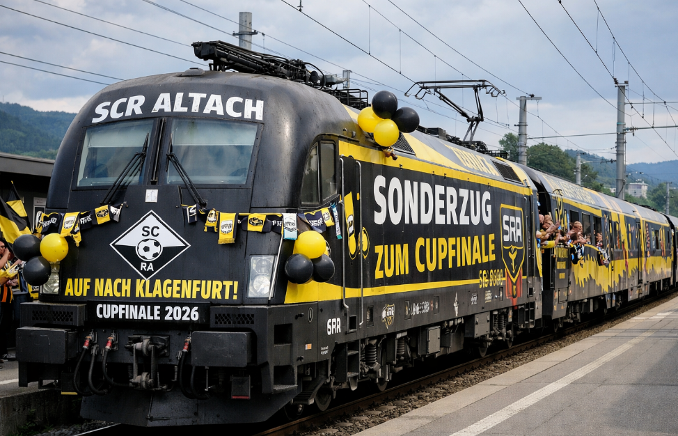 Was wird das für ein “Leckerbissen” für die Altach Fans. Es gibt einen Sonderzug nach Klagenfurt, dazu verschiedene Busangebote. Auch eine Begleitung der Mannschaft im Charterflug nach Klagenfurt ist möglich. Dazu die vielen Privatfahrten, die es nach Klagenfurt geben wird. JEDER will dabei sein bei diesem Cup-Finale.