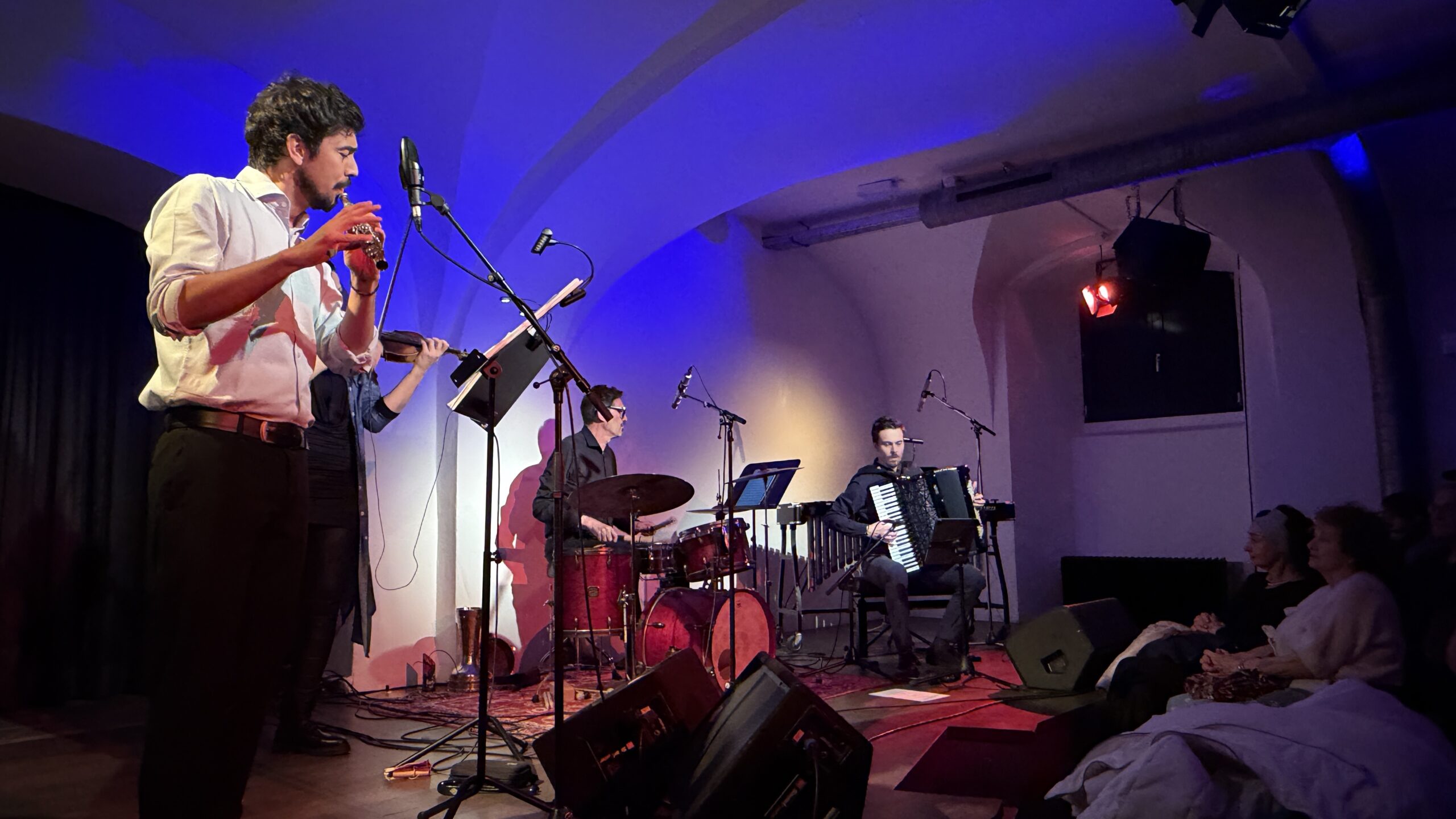 Stilistisch bewegte sich das Ensemble souverän zwischen Tango Nuevo und Weltmusik. Immer wieder blitzten Anklänge an den Tango Argentino auf, mal leidenschaftlich und markant, mal subtil und fein nuanciert. Gleichzeitig öffnete sich das Programm in Richtung Orient und Osteuropa: Klänge, die an die Türkei, Armenien oder Bulgarien erinnerten, flossen organisch in die Kompositionen ein und erweiterten den musikalischen Horizont des Abends.