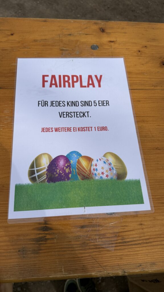 Vor diesem Hintergrund könnte für zukünftige Ausgaben der Ostereiersuche überlegt werden, das Konzept leicht anzupassen – etwa indem nur die Kinder selbst Zugang zur abgesteckten Suchwiese erhalten, ohne direkte Begleitung durch Erwachsene im Suchbereich. Dies könnte helfen, die Einhaltung der Regeln besser zu gewährleisten und allen Kindern ein gleichwertiges Erlebnis zu ermöglichen.