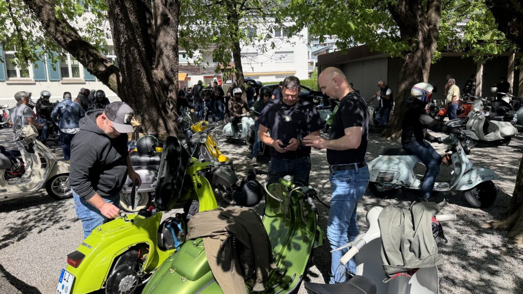 Bereits am Treffpunkt beim Möslestadion in Götzis lag eine besondere Atmosphäre in der Luft. Rund 130 Roller, geschniegelt und geschniegelt, reihten sich in einem farbenfrohen Corso aneinander – ein lebendiges Panorama italienischer Zweiradkultur, das die Vorfreude auf die bevorstehenden rund 70 Kilometer spürbar machte. Teilnehmer aus Deutschland, Liechtenstein, der Schweiz und ganz Vorarlberg waren angereist, um Teil dieses besonderen Tages zu sein.